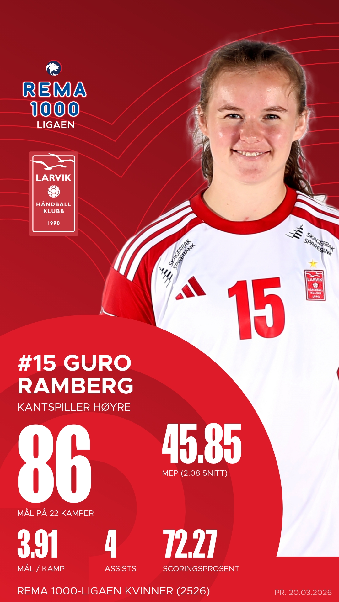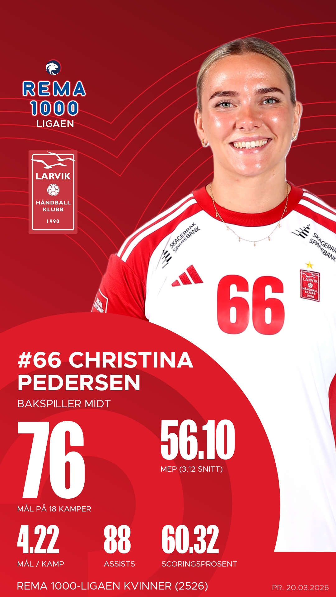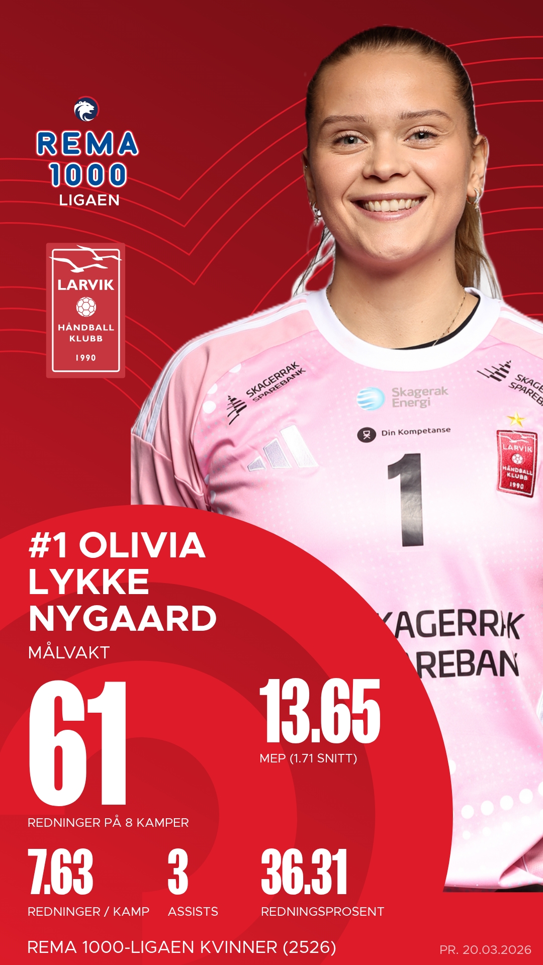 Larvik stiller med flere profiler som har levert på høyt nivå gjennom sesongen. Christina Pedersen har vært en motor i angrepsspillet med presise pasninger og mange assists fra sin rolle som playmaker. På kanten har Guro Ramberg vært en konstant trussel med høy uttelling på skuddene og en offensiv kraft som kan rive hull i ethvert forsvar. I tillegg har målvakt Olivia Lykke Nygaard levert flere solide redninger og vært et trygt siste skansepunkt bak et kompakt Larvik-forsvar.